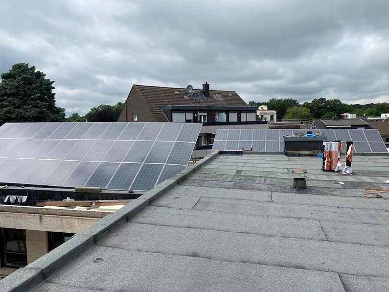 Dado que la potencia solar total de cada tejado es de 11,5 kW, hemos equipado cada sistema con un inversor de almacenamiento de energía de 10 kW, que puede alcanzar un máximo