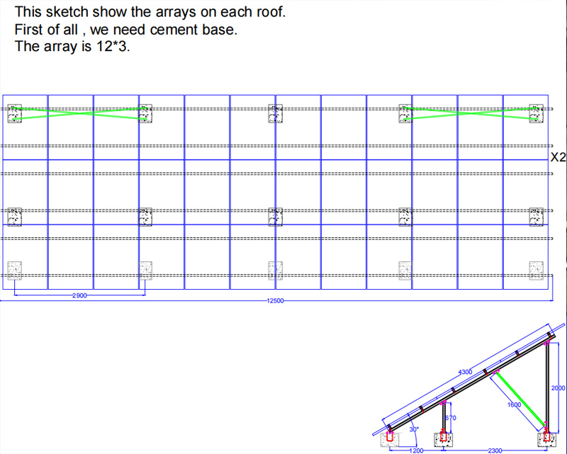 Consulte los documentos del cliente, el área de instalación es un techo de cemento plano, cuya capacidad de carga es de 30 kg/m2 normalmente.