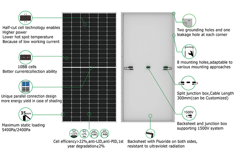 Panel solar monocristalino MBB de media celda de 580 W de origen chino Leer más