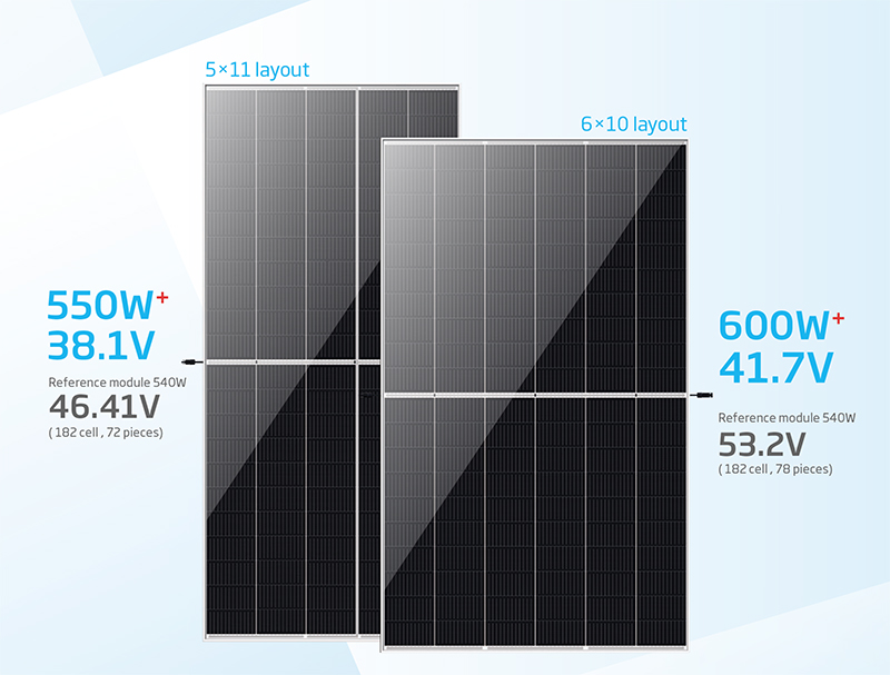 mientras se maximiza el uso del espacio. Si se aplicara el diseño tradicional de celda de medio corte a las obleas de silicio ultragrandes de 210 mm,