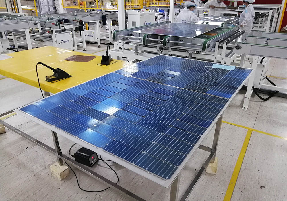 basado en el batería tradicional hoja, esto producto utiliza el método de corte por láser cortar el hoja de batería estándar en dos y semicélulas idénticas perpendiculares a el línea de rejilla principal el batería, y luego los suelda en serie.