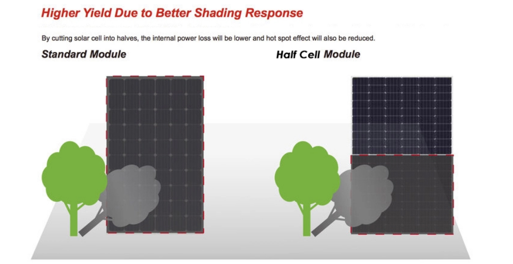 debido a el reducción de circuito interno y consumo interno se mejora la eficiencia del envasado; adición, el temperatura de trabajo de el componente se reduce, que reduce el probabilidad de punto caliente y mejora el fiabilidad y seguridad de el componente.En el aspecto de sombra sombreado debido a el diseño único tiene mejor anti - sombreado rendimiento que componentes convencionales Comparados con tradicionales componentes, mitad - chip componentes se manifiestan principalmente en tres aspectos:
