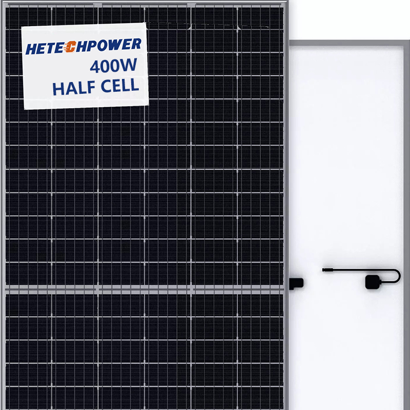 Panel solar mono PERC de celdas en ángulo recto. Es un módulo de conexión a red ideal para... instalación en azotea con Disposición de media celda de 144 (6X24) por panel Los módulos Hetech están diseñados con tecnología de media celda PERC mono de 5 barras colectoras que reduce la pérdida de corriente, lo que produce una mayor eficiencia del módulo.