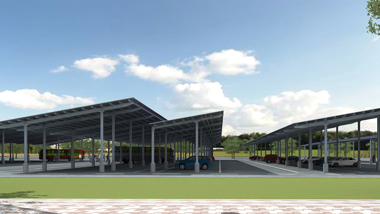 no solo puede albergar vehículos viento y lluvia, pero también generar electricidad usando